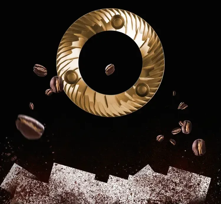 El Ares incorpora fresas planas duales de 90 mm con recubrimiento de titanio y acero inoxidable, diseñadas para ofrecer una molienda rápida, uniforme y estable incluso en jornadas de trabajo continuas.